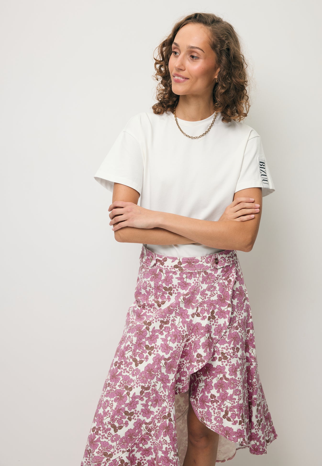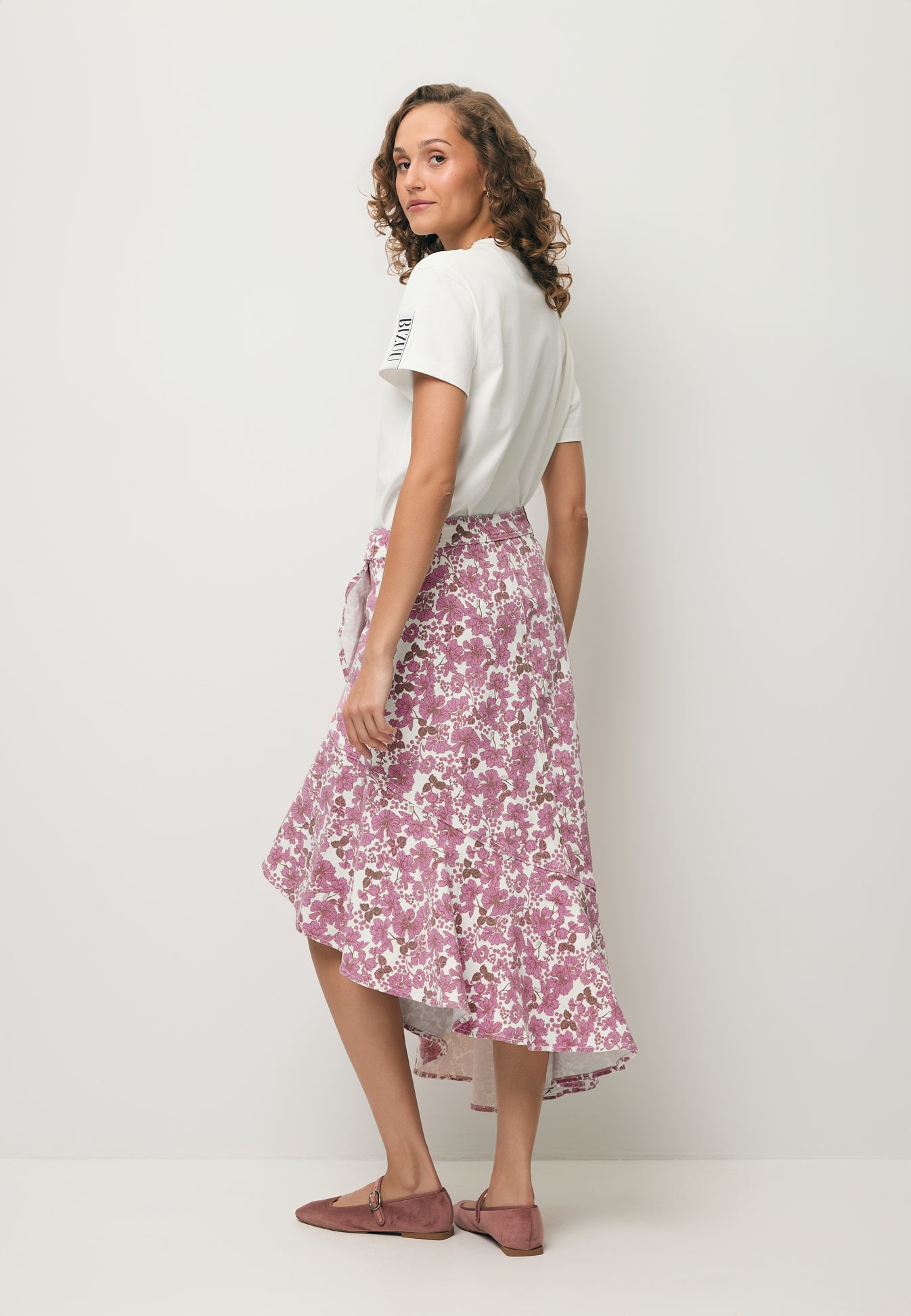 Asymetryczna denimowa spódnica NIIAM to doskonała propozycja dla kobiet ceniących oryginalne wzornictwo. Spódnica ozdobiona jest autorskim printem oraz efektowną falbaną, która dodaje lekkości i kobiecego uroku. Wyposażona w pasek w talii, spódnica zapinana jest kopertowo, co nadaje jej wyjątkowego charakteru. Idealna na wiele okazji, ta spódnica z pewnością wyróżni Cię z tłumu.