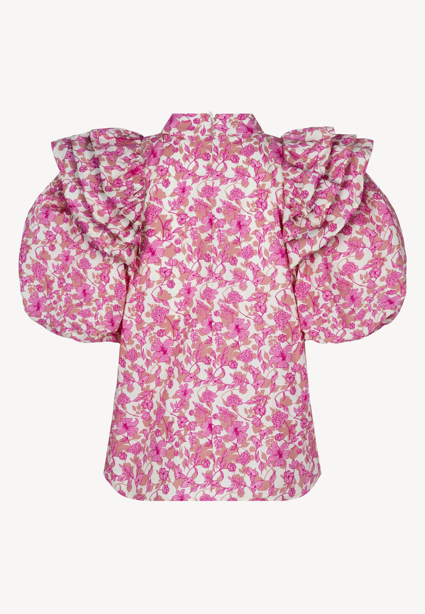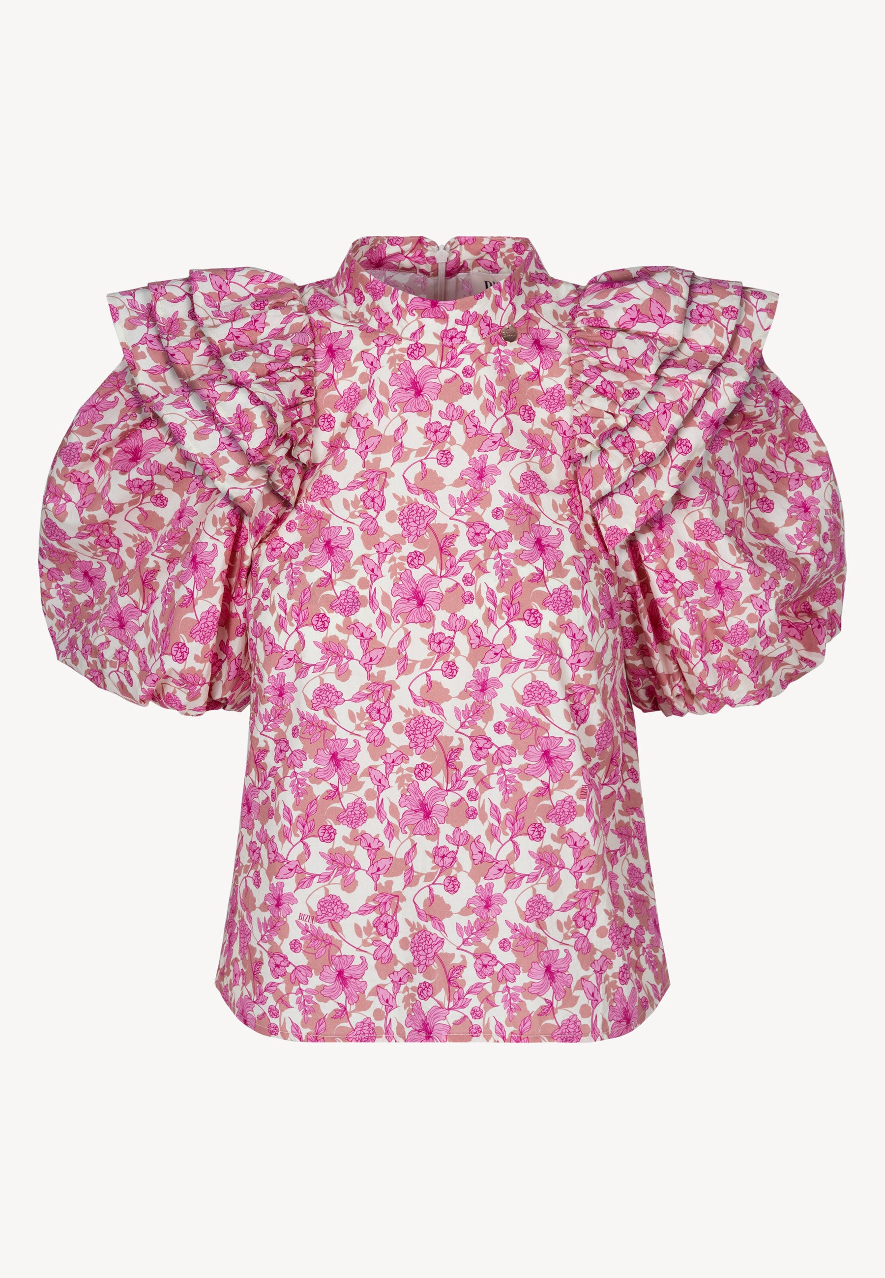 Bluzka CASSANDRA to doskonały wybór dla kobiet ceniących unikalny design i wysoką jakość. Wykonana z bawełnianej tkaniny w autorski print, prezentuje się niezwykle efektownie. Dekolt wykończony stójką z logowanym medalikiem w kolorze złotym dodaje bluzce elegancji. Ozdobne falbanki na ramionach nadają delikatności, a krótkie, bufiaste rękawy odszyte podszewką z gumą w dolnej części zapewniają wygodę noszenia. Bluzka zapinana na suwak w tyle gwarantuje łatwe zakładanie i zdejmowanie.