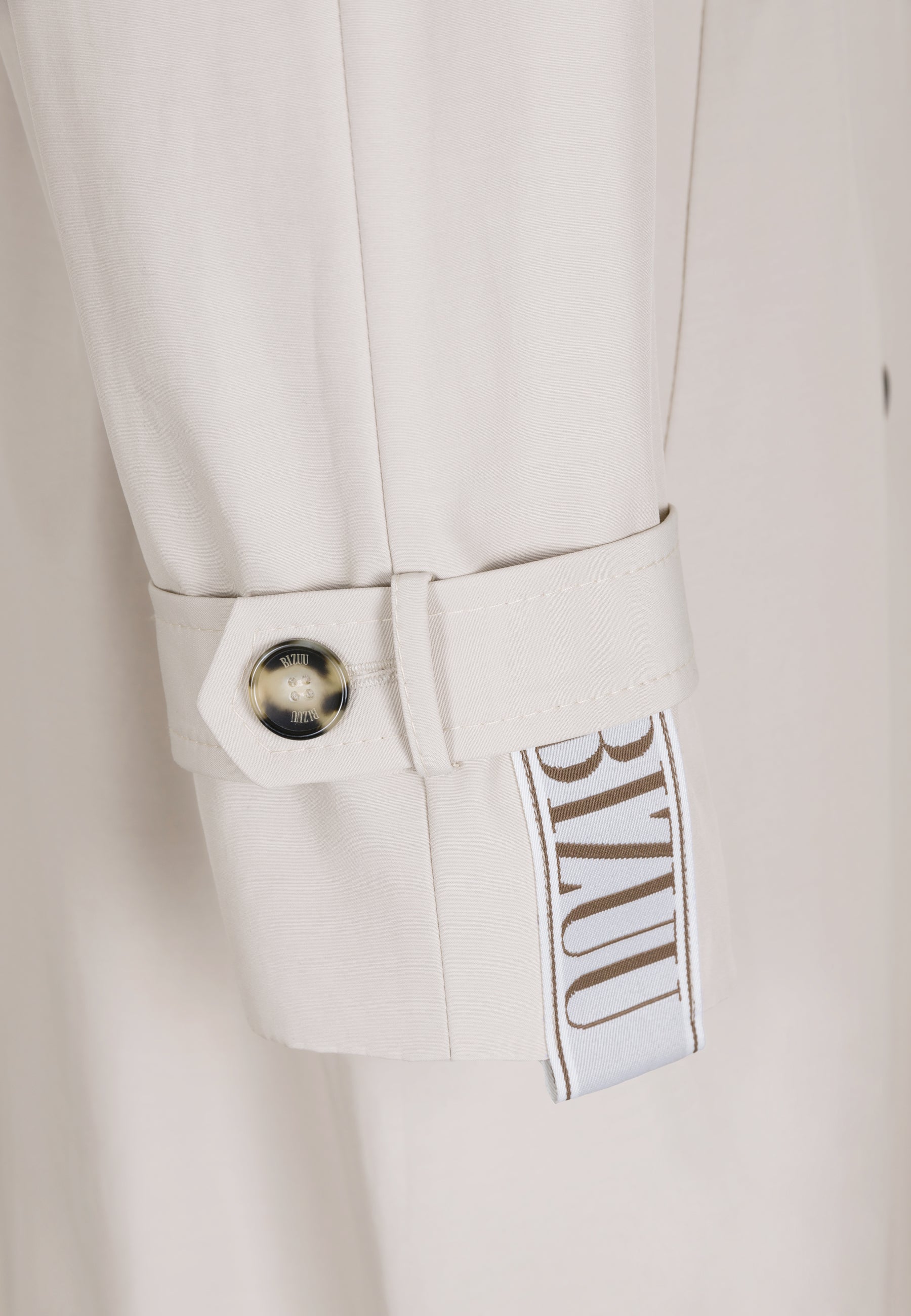 Beżowy damski płaszcz oversize z lampasem RACHELLA