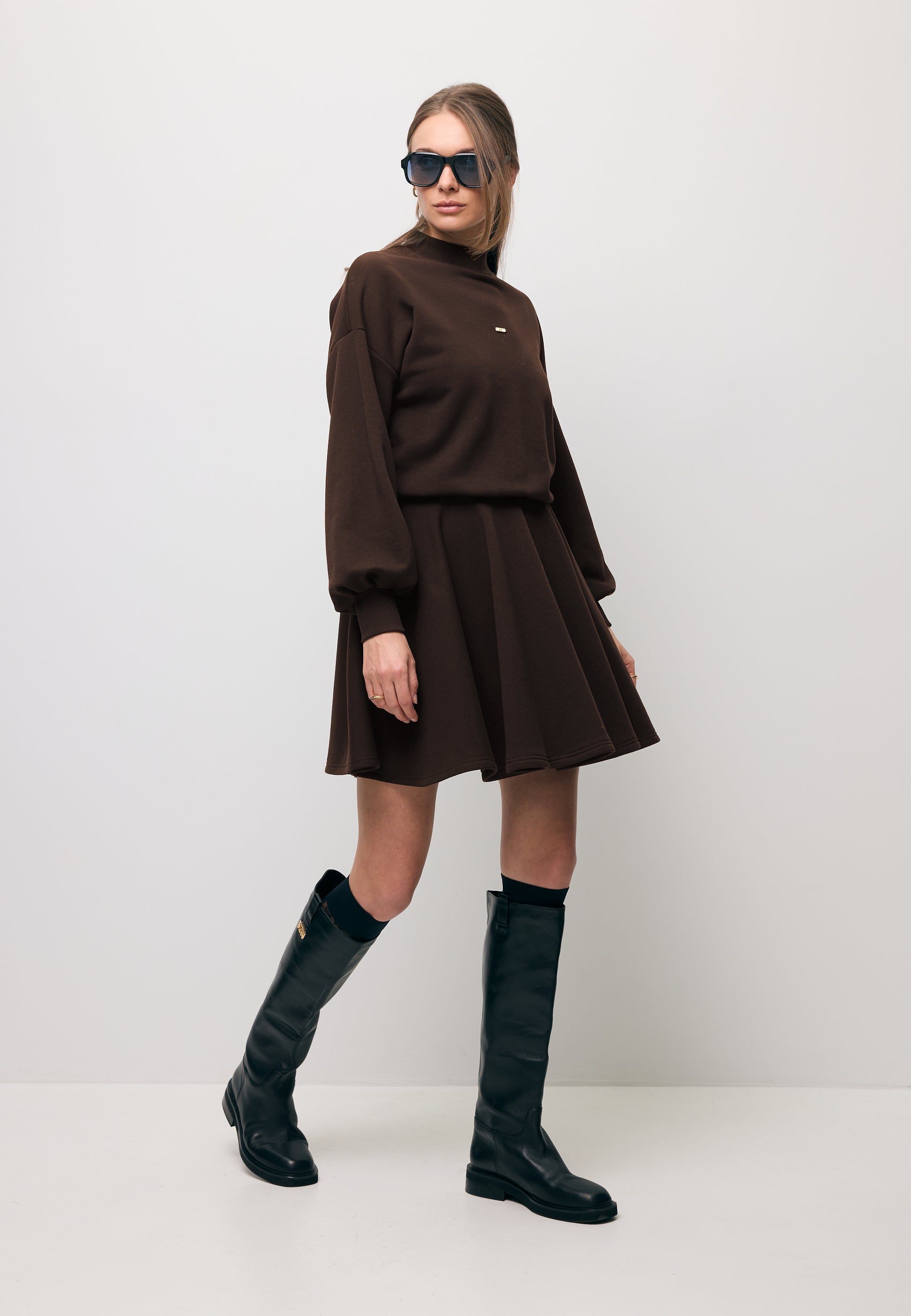 Brązowa sukienka mini z rozkloszowanym dołem FOXI