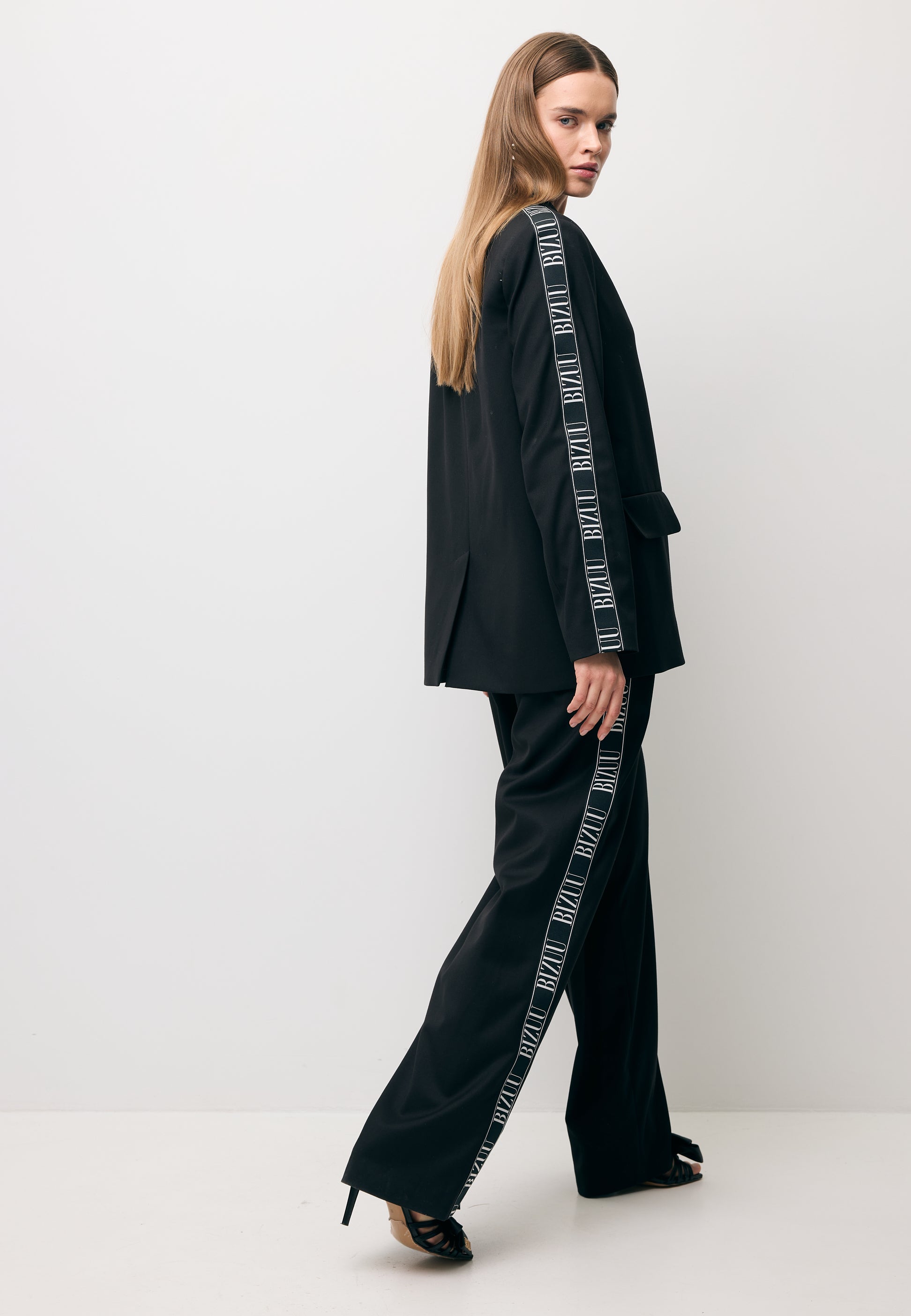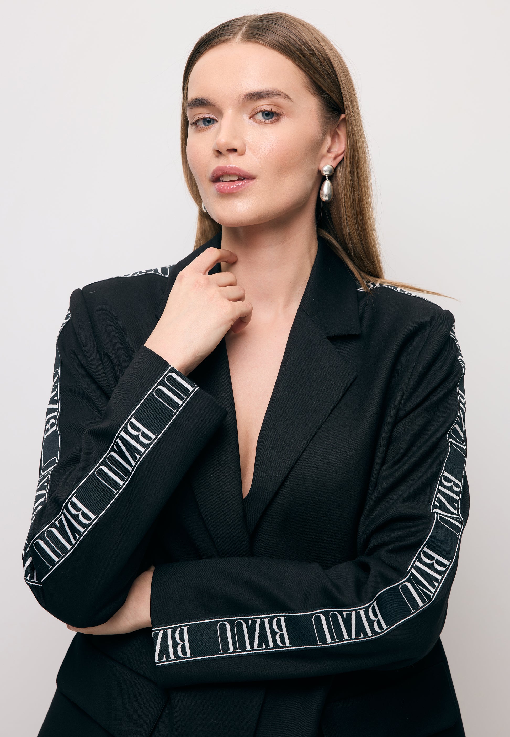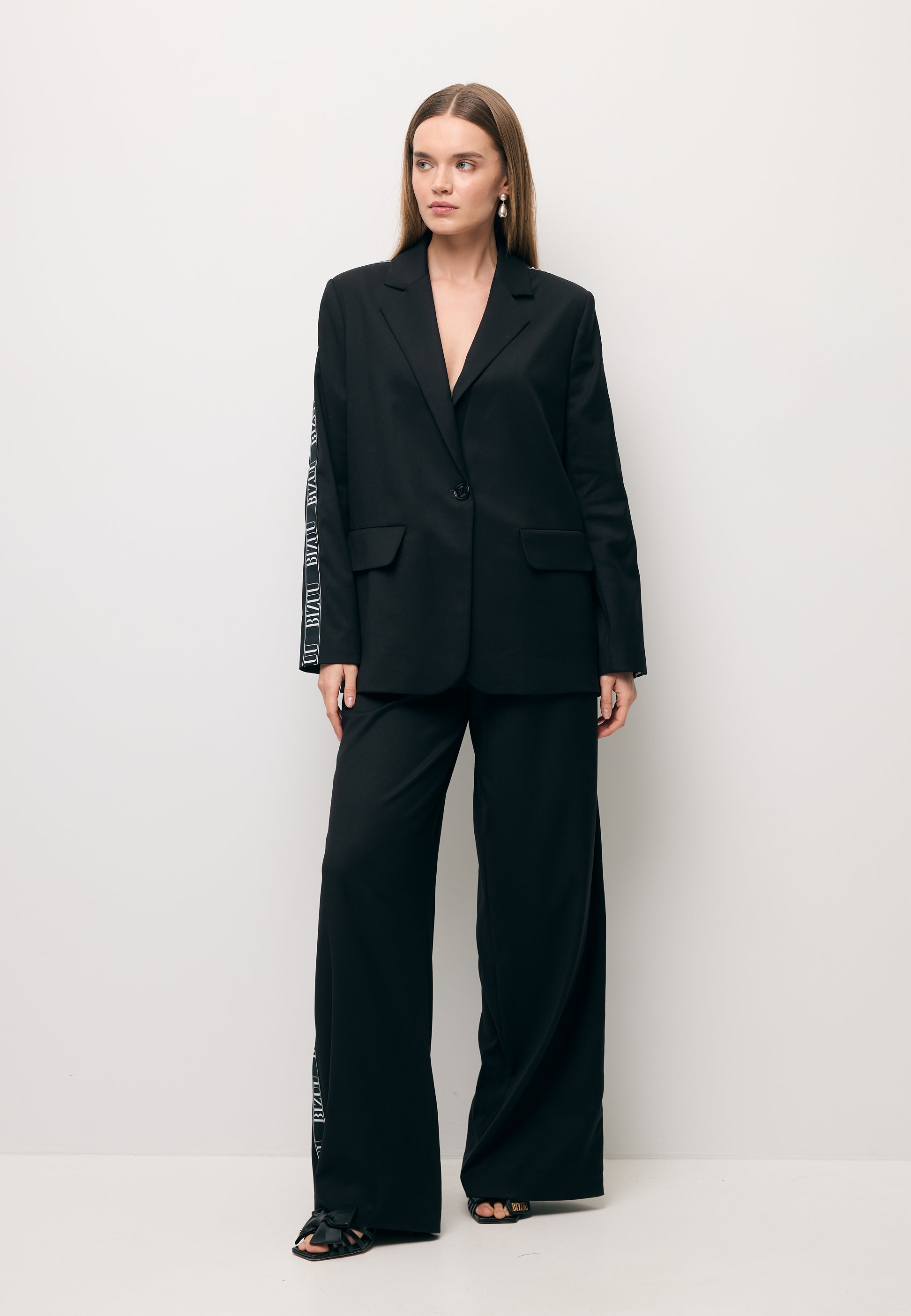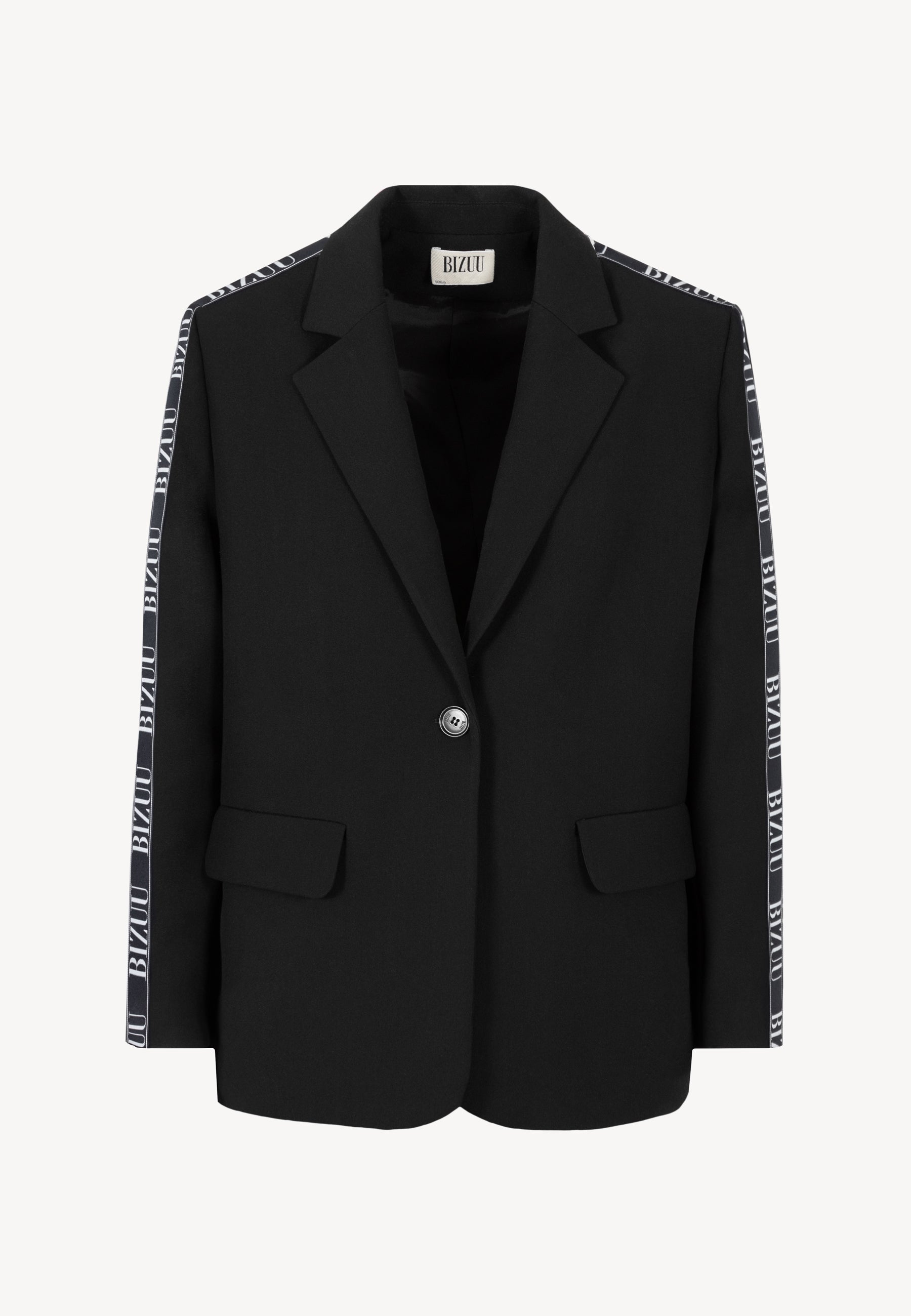 Marynarka VANDA to elegancka propozycja dla kobiet ceniących wygodę i styl. Czarna marynarka o oversize'owym kroju, zapinana na logowany guzik, posiada dwie praktyczne kieszenie z przodu. Dodatkowo ozdobiona jest czarno-białym lampasem na ramieniu i rękawie, nadając jej wyjątkowego charakteru. Marynarka VANDA to doskonała propozycja dla kobiet, które cenią sobie elegancję i komfort noszenia.