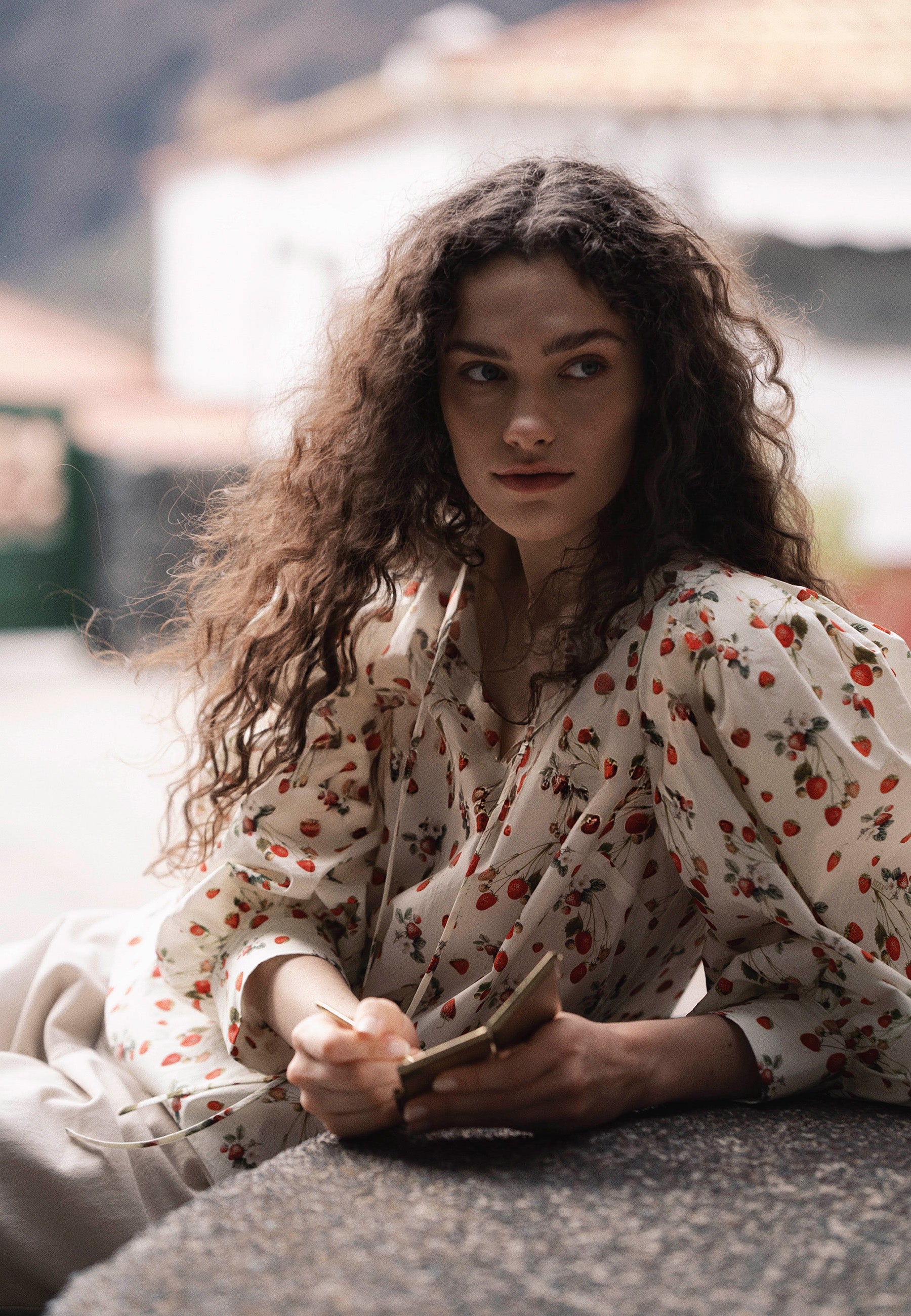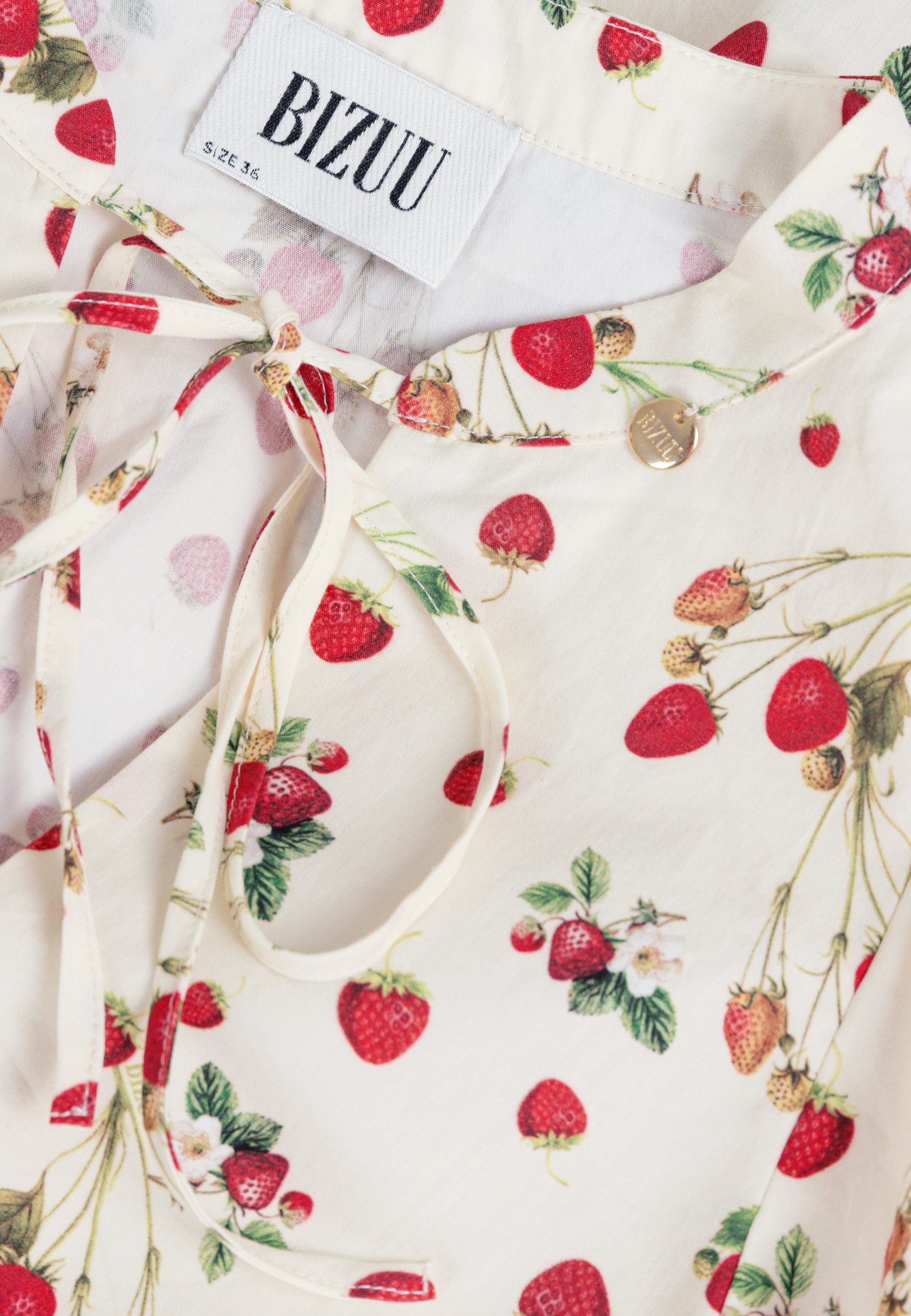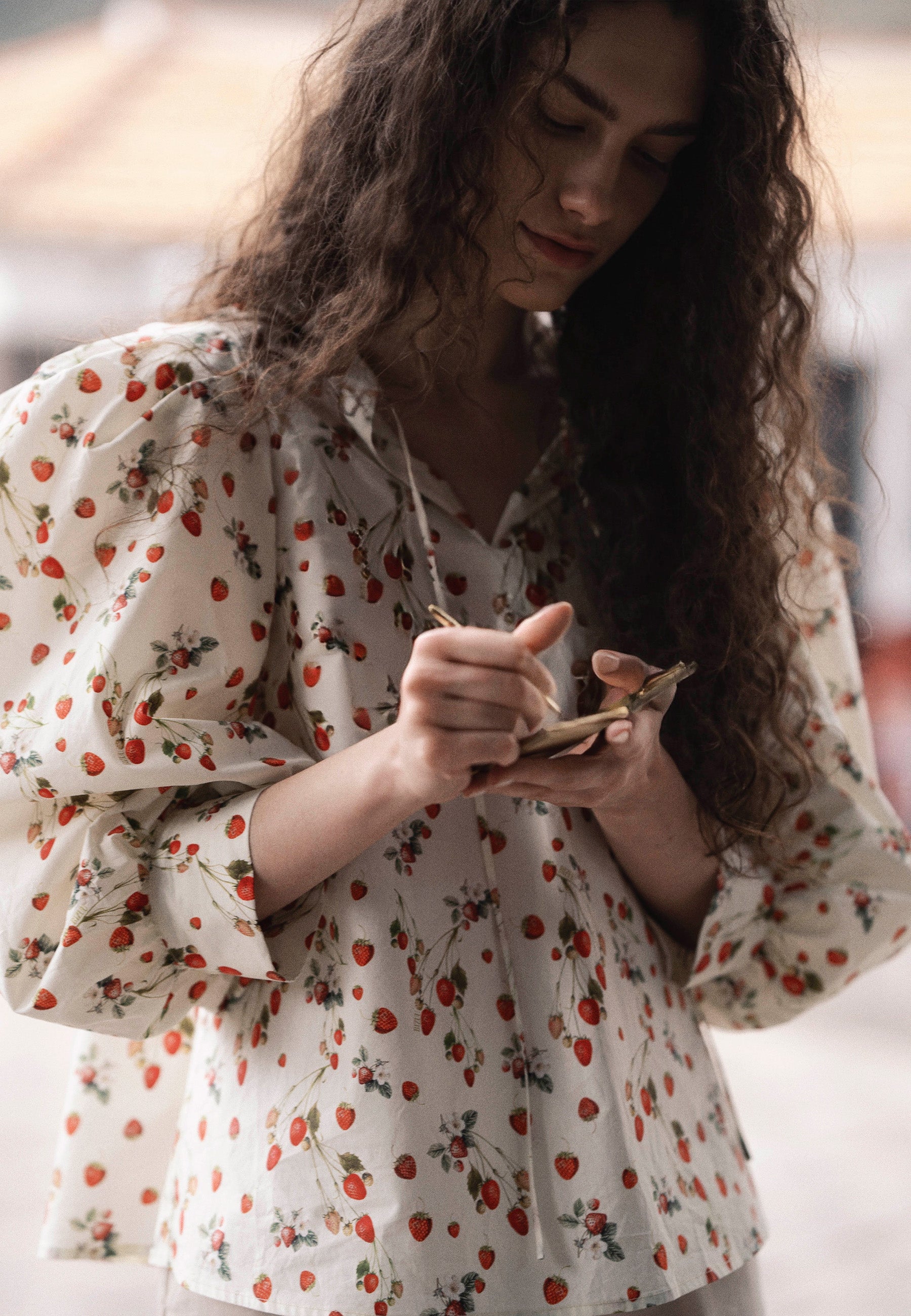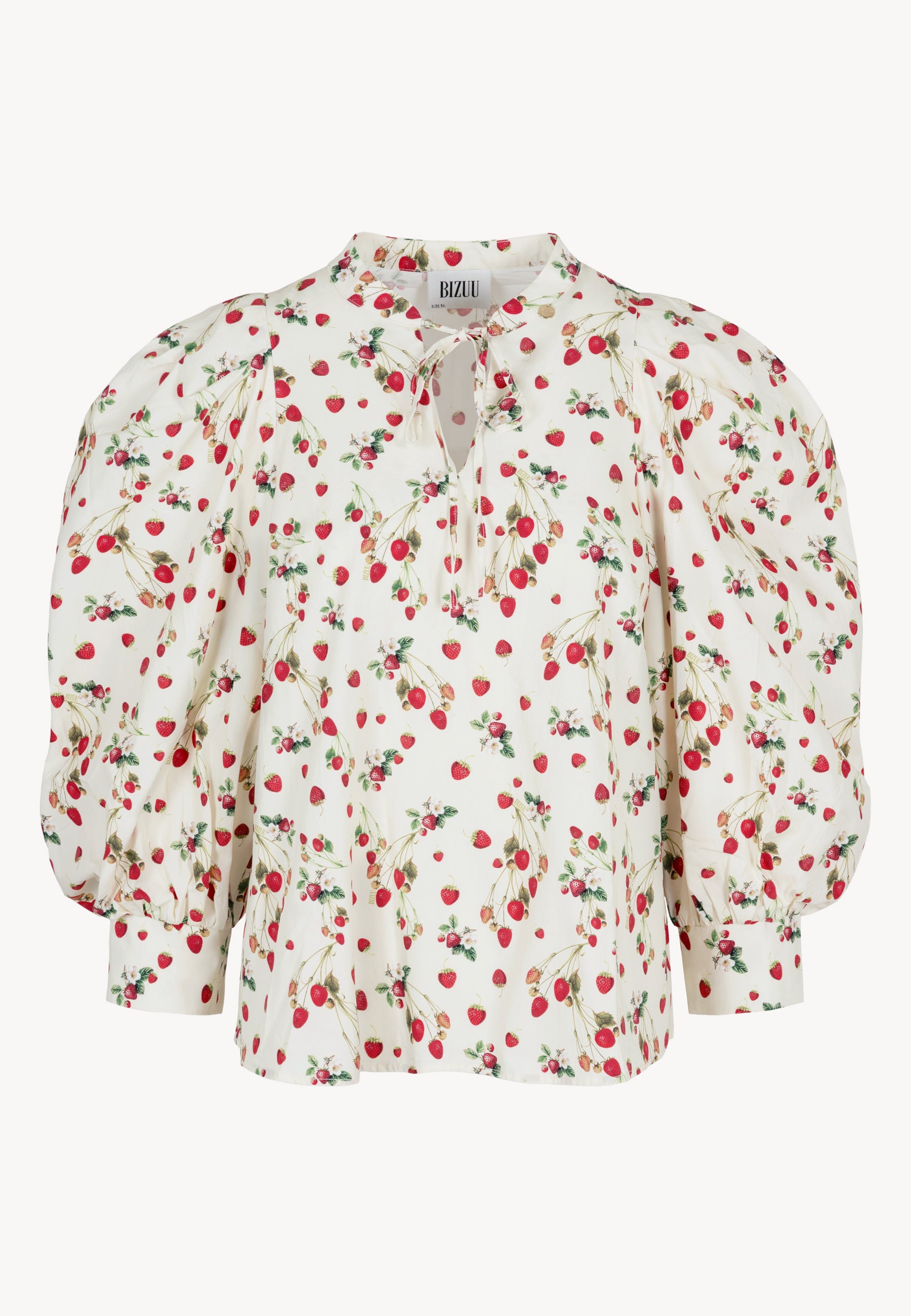 Bluzka ANDRASSA to elegancki i wyjątkowy element garderoby każdej kobiety. Wykonana z wysokiej jakości bawełny, ozdobiona autorskim printem, prezentuje się niezwykle stylowo. Dekolt zakończony stójką oraz złoty logowany medalik dodają bluzce elegancji i szyku. Przód bluzki ozdobiony jest pęknięciem wykończonym plisą oraz troczkiem do wiązania, co nadaje całości oryginalny charakter. Bufiaste rękawy o długości 3/4 z mankietem dodają lekkości i delikatności całej stylizacji.