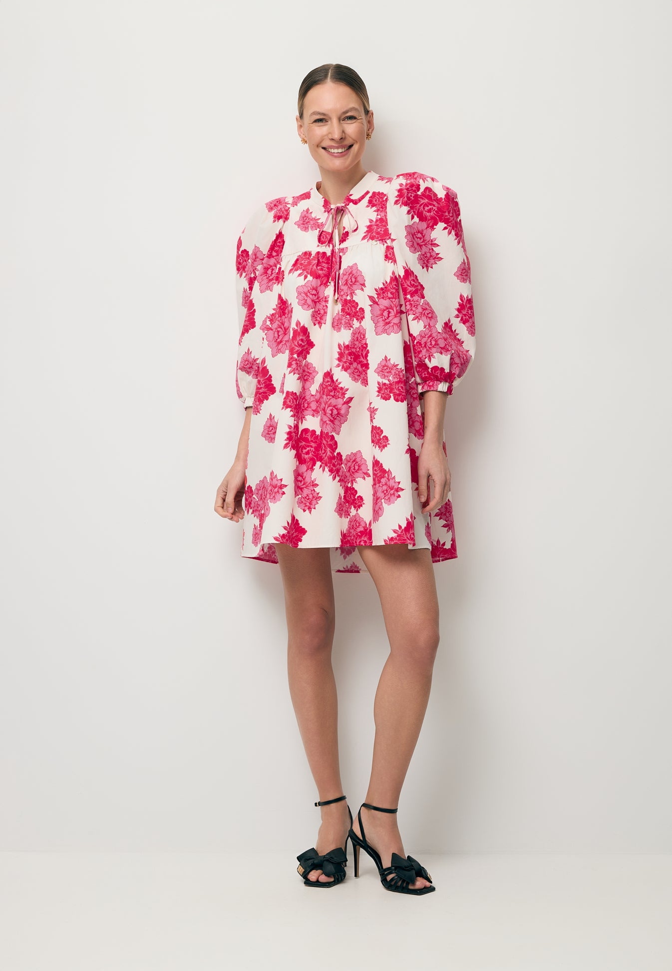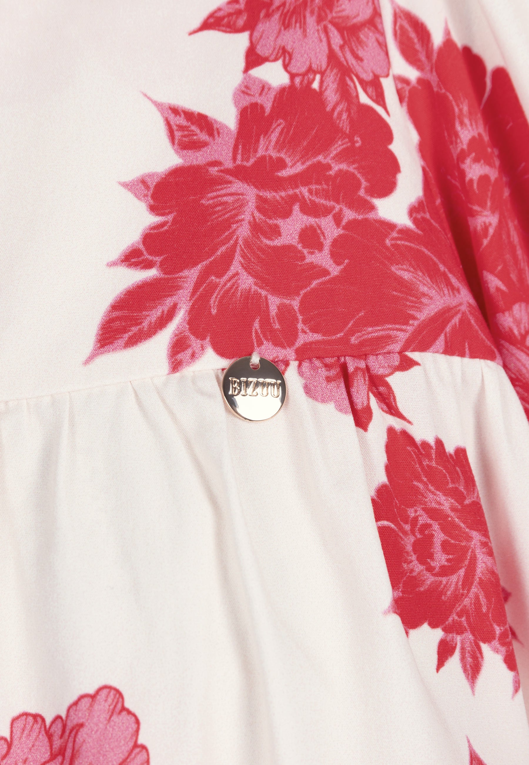 Sukienka AYOTE to kwintesencja letniego stylu. Mini długość, autorski kwiatowy print na kremowym tle oraz bufiaste rękawy nadają sukience wyjątkowego charakteru. Dodatkowo ozdobne wiązanie na troczki z logowanymi złotymi końcówkami oraz medalik z logo BIZUU podkreślają jej ekskluzywność. Ta sukienka to idealny wybór dla kobiet ceniących sobie wysoką jakość i unikalny design.